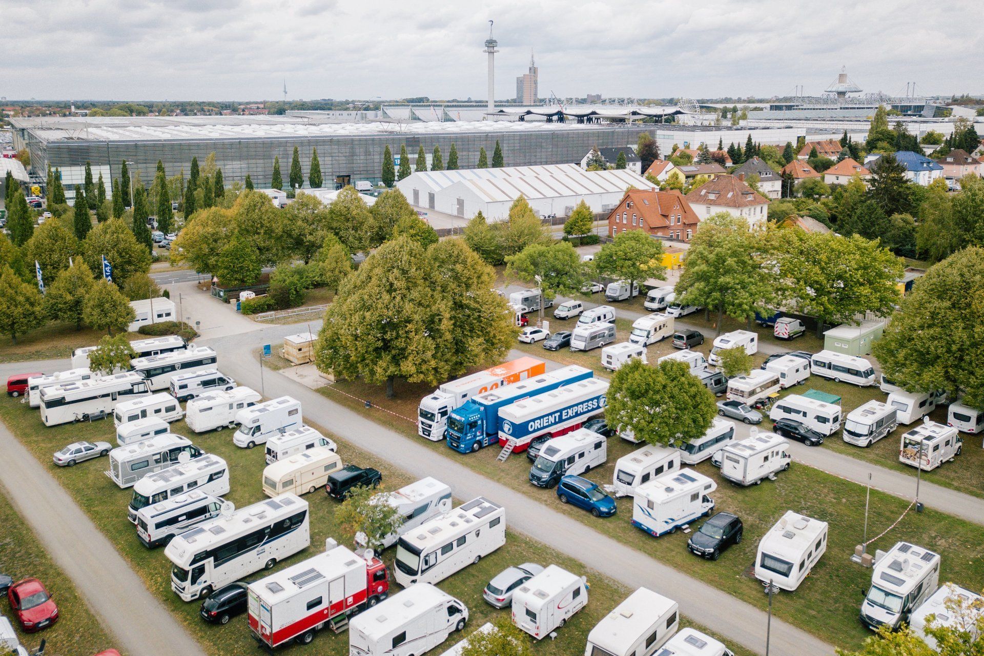 The caravan park owned by Deutsche Messe can be used for all residential vehicles (less than 4 m high) for larger trade and consumer fairs at a charge. It is located across hall 13 (entrance area West) in the South of the exhibition grounds on the corner of Kronsbergstrasse and Karlsruher Strasse and is right across the street from the exhibition grounds